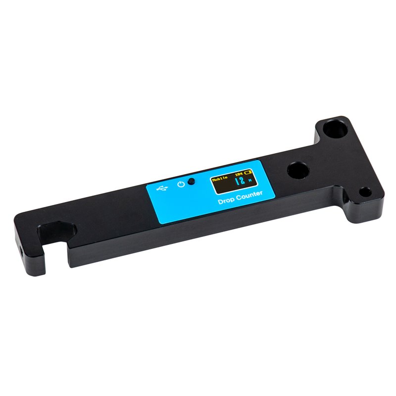 For measuring and recording the number of drops of liquid dispensed during a titration experiment.
